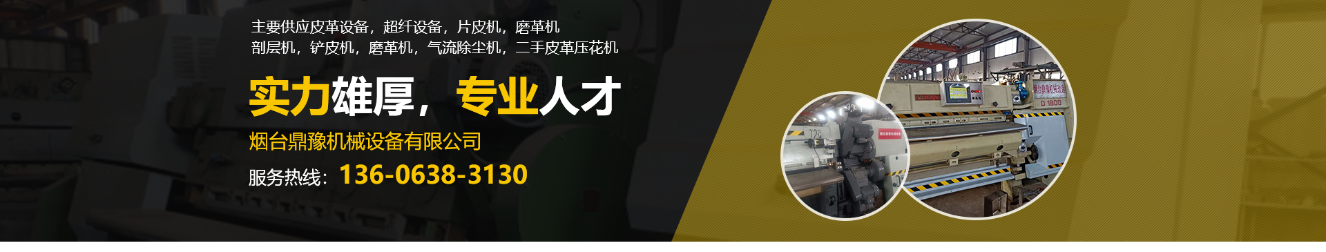 煙臺鼎豫機械設備有限公司位于山東省煙臺市芝罘區楚玉路238號泰和工業園,我公司主要經營皮革機械設備,超纖設備及配件的生產,銷售。我們有好的產品和專業的銷售和技術團隊,主要供應皮革設備,超纖設備,片皮機,磨革機,剖層機,鏟皮機,磨革機,氣流除塵機,二手皮革壓花機。我們具有專業維修國內外各種型號精密片皮機的技術和能力,承攬大中小維修機械的業務。定制各種型號帶刀、砂輪等。